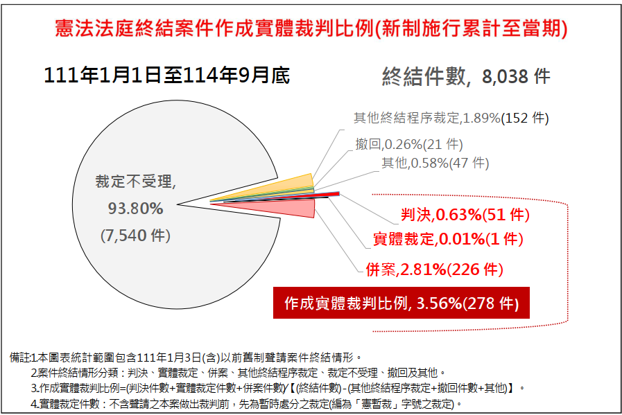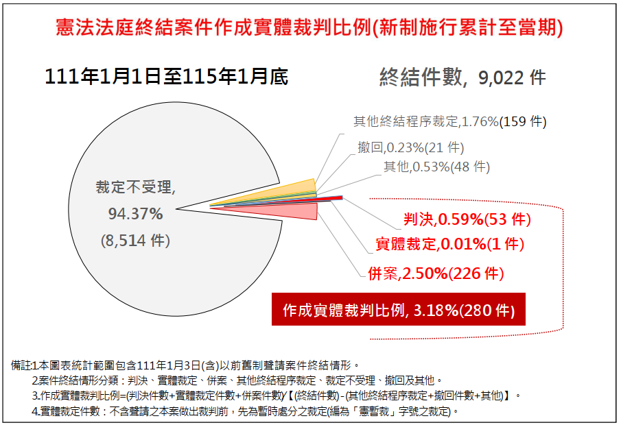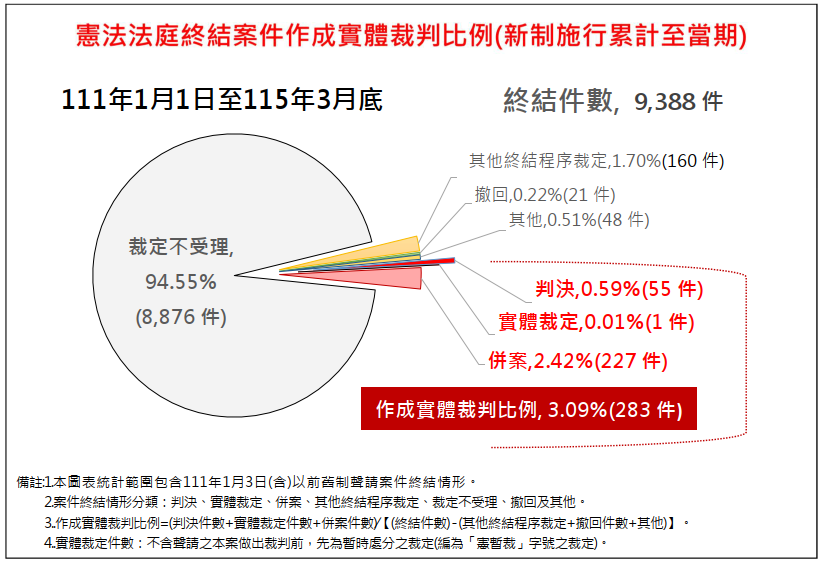憲法法庭終結案件作成實體裁判比例(新制施行累計)