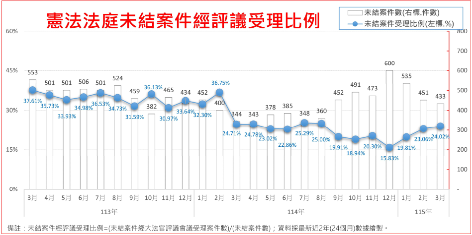 憲法法庭未結件案件經評議受理比例